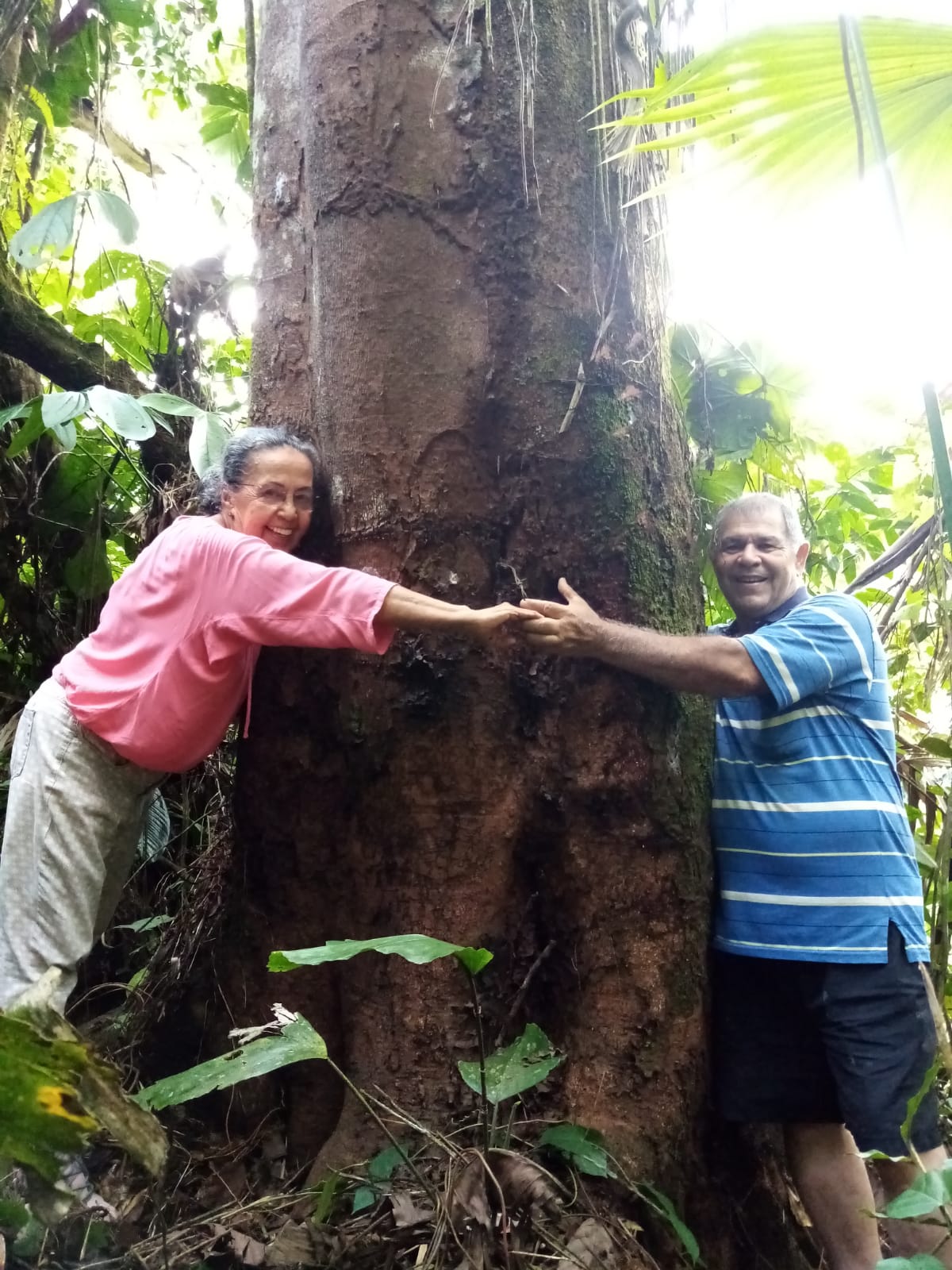 Nos llenamos de energía abrazando un viejo árbol de incienso y tratando de medir su circunferencia.